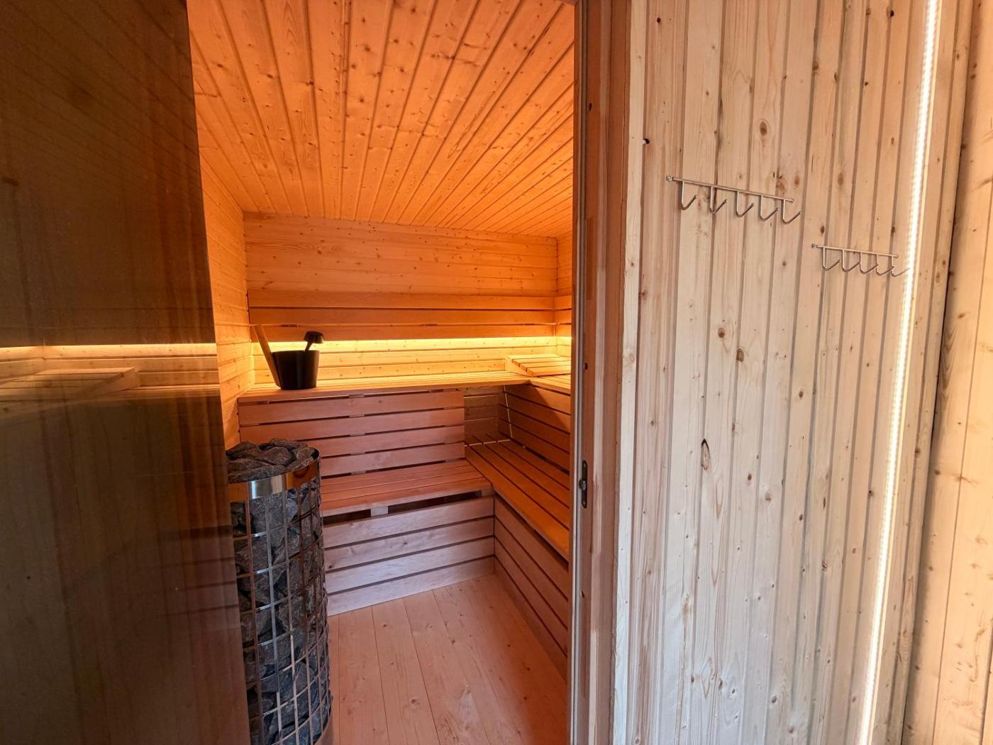 Studio. This studios standout features are the hot tub and sauna. Guests will find a stovetop, a refrigerator, kitchenware and a microwave in the well-fitted kitchen. The studio also features a barbecue. This studio is comprised of a flat-screen TV with streaming services, a private bathroom as well as a terrace with lake views. The unit has 2 beds.