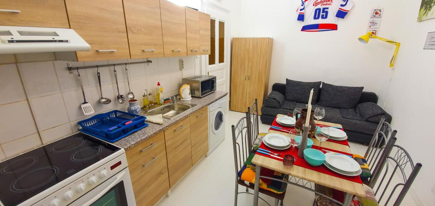 One-Bedroom Apartment. This apartment consists of 1 living room, 1 separate bedroom and 1 bathroom with a shower and a hairdryer. Guests can make meals in the kitchen that is equipped with a stovetop, a refrigerator, kitchenware and an oven. The apartment provides a washing machine, soundproof walls, a tea and coffee maker, a flat-screen TV, as well as a quiet street view. The unit offers 3 beds.