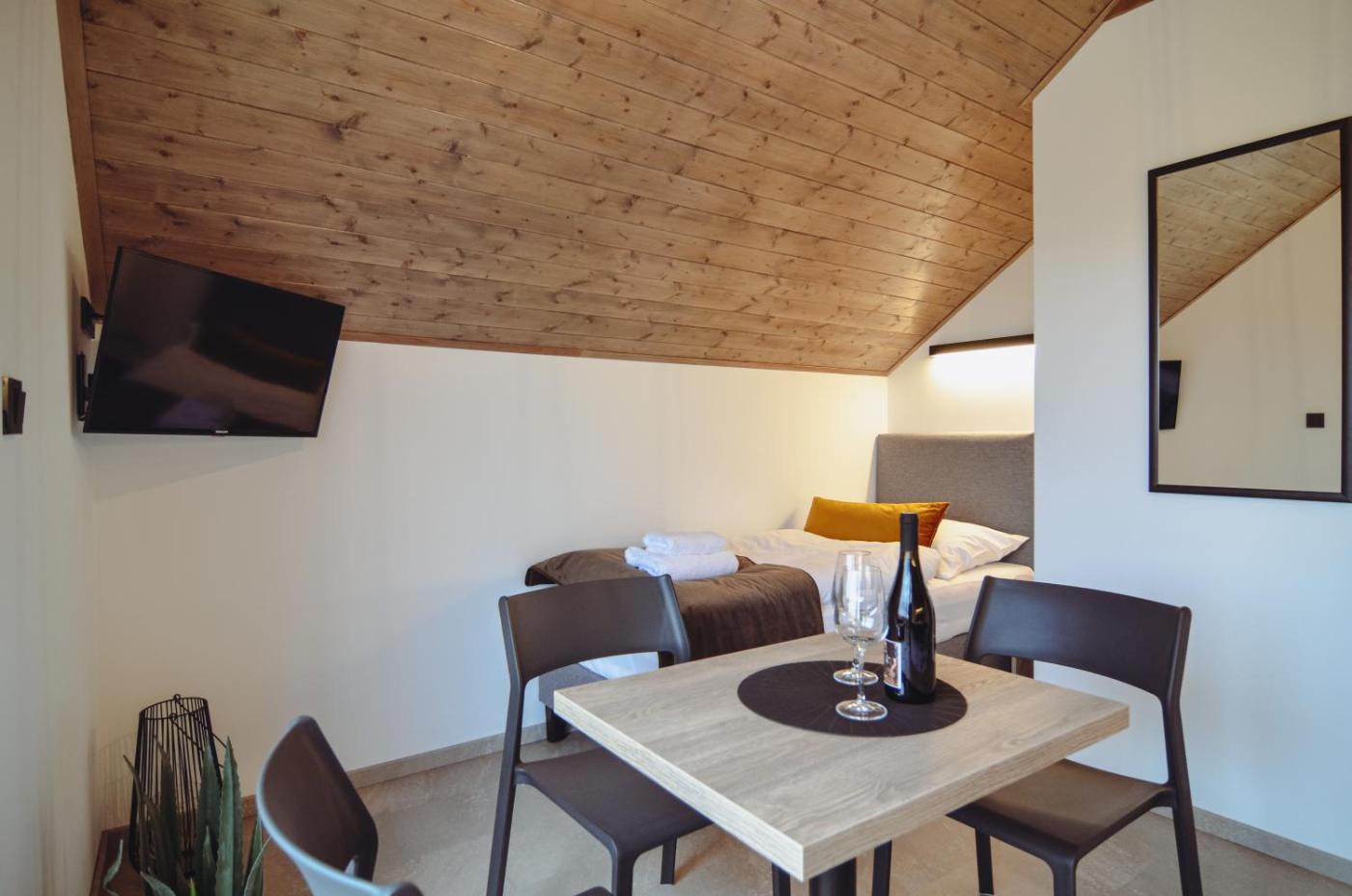 Studio - Split Level. The studio features a private bathroom, air conditioning, a tea and coffee maker, as well as a seating area with a flat-screen TV. A kitchenette equipped with a stovetop, a refrigerator and kitchenware is available for cooking and storing food. This studio has a wardrobe, TV, a quiet street view, as well as winechampagne for guests. The unit offers 2 beds. ;